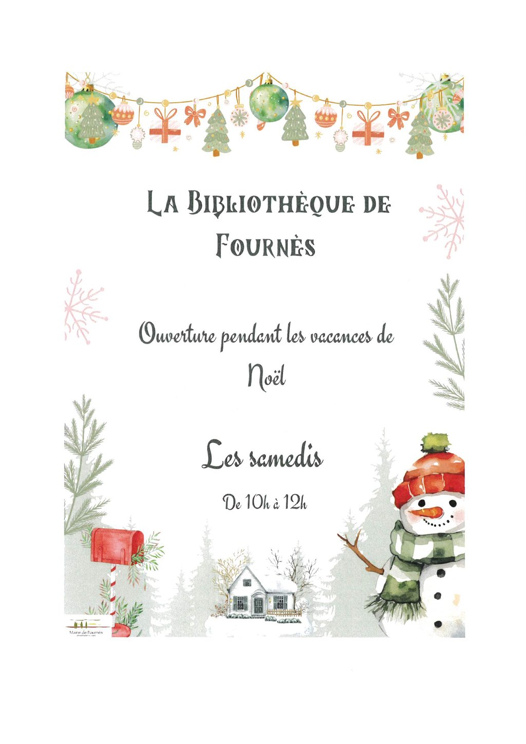 La bibliothèque de Fournès ouvre ses portes pendant les vacances de Noël, tous les samedis de 10 h 00 à 12 h 00.